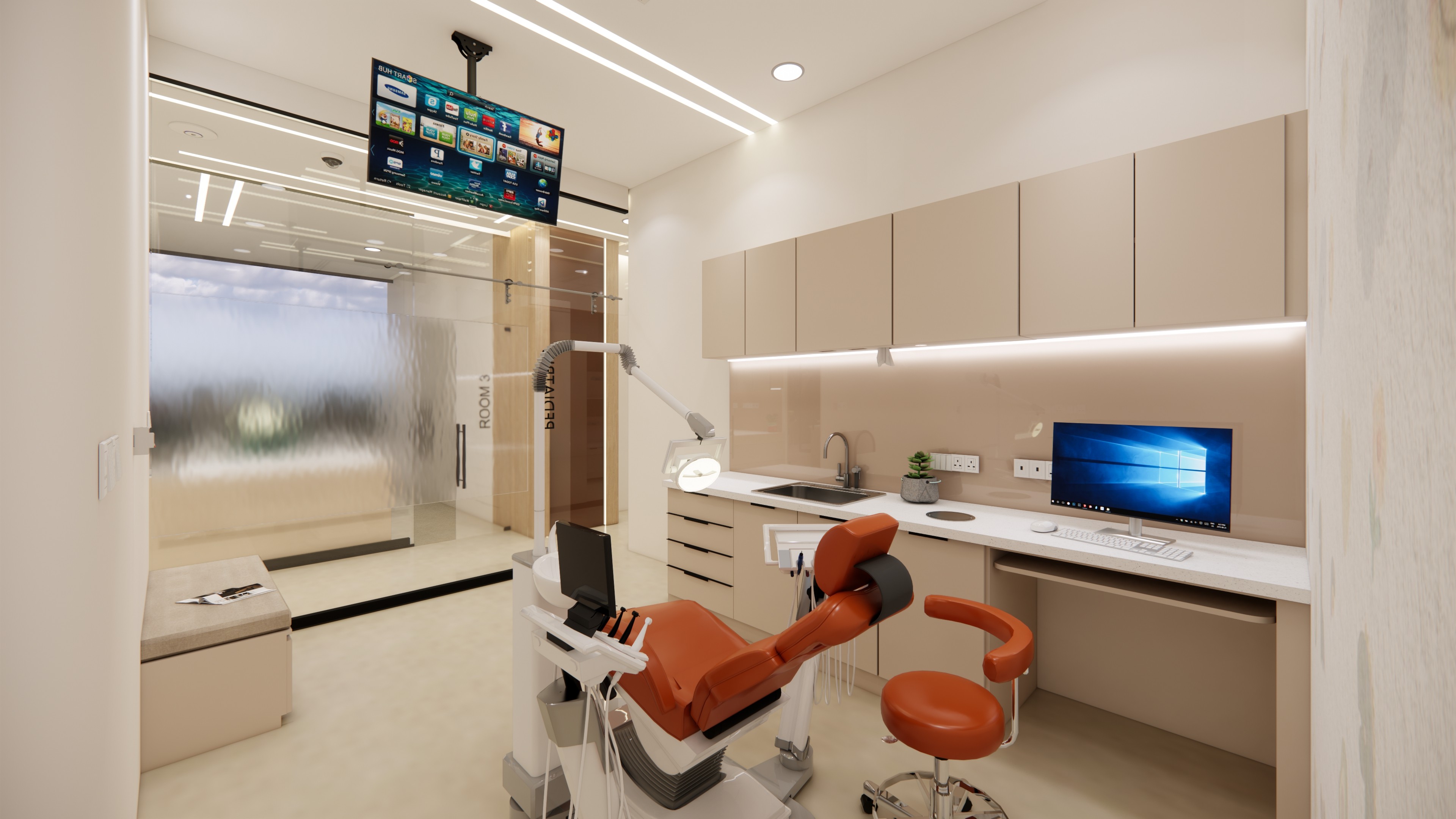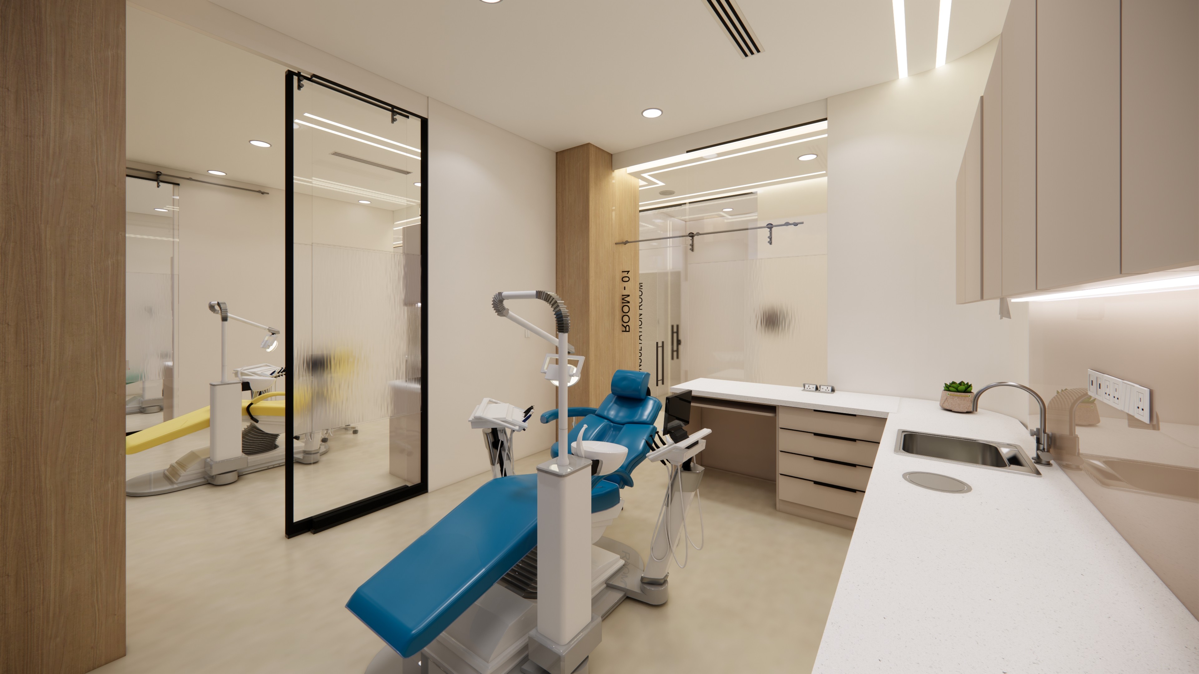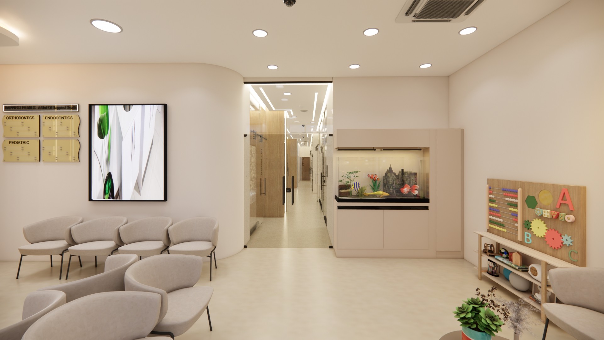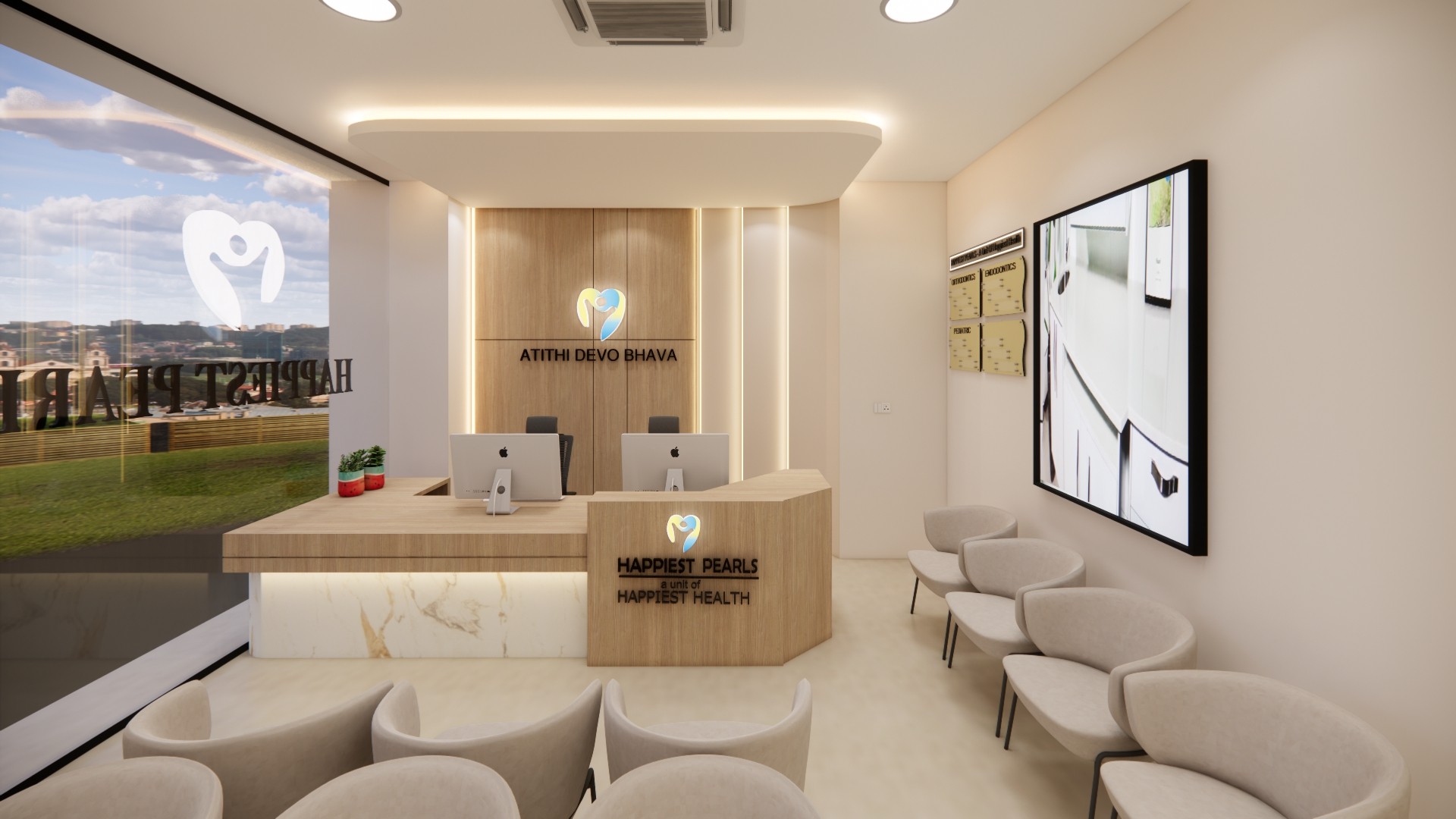 Happiest Pearl Dental Clinic in Whitefield is designed as a calm, welcoming healthcare space that balances clinical efficiency with warmth and comfort. The interiors use a clean, contemporary language with soft lighting, neutral tones, and carefully considered layouts to create a reassuring environment for patients. Thoughtful planning ensures seamless workflows for practitioners while maintaining a relaxed and approachable atmosphere throughout the clinic.