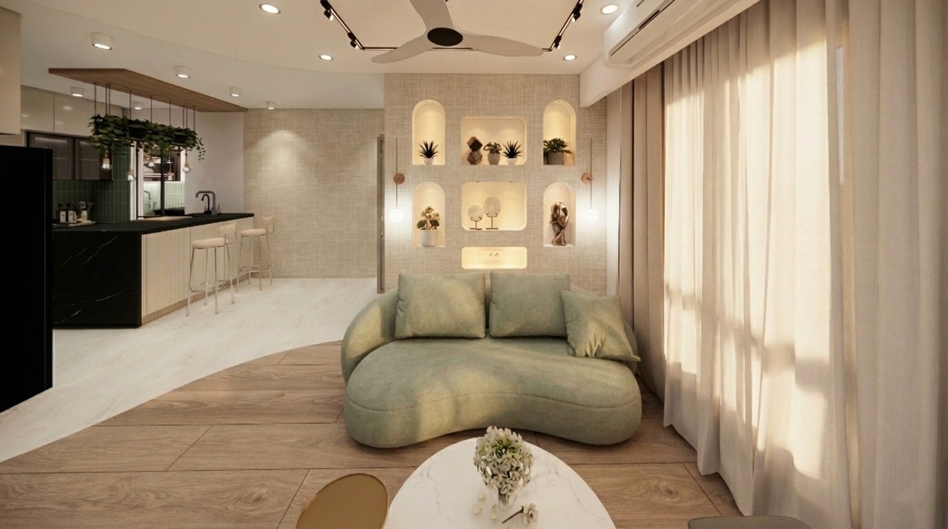 Thoughtful layering of light, subtle textures, and open spatial flow